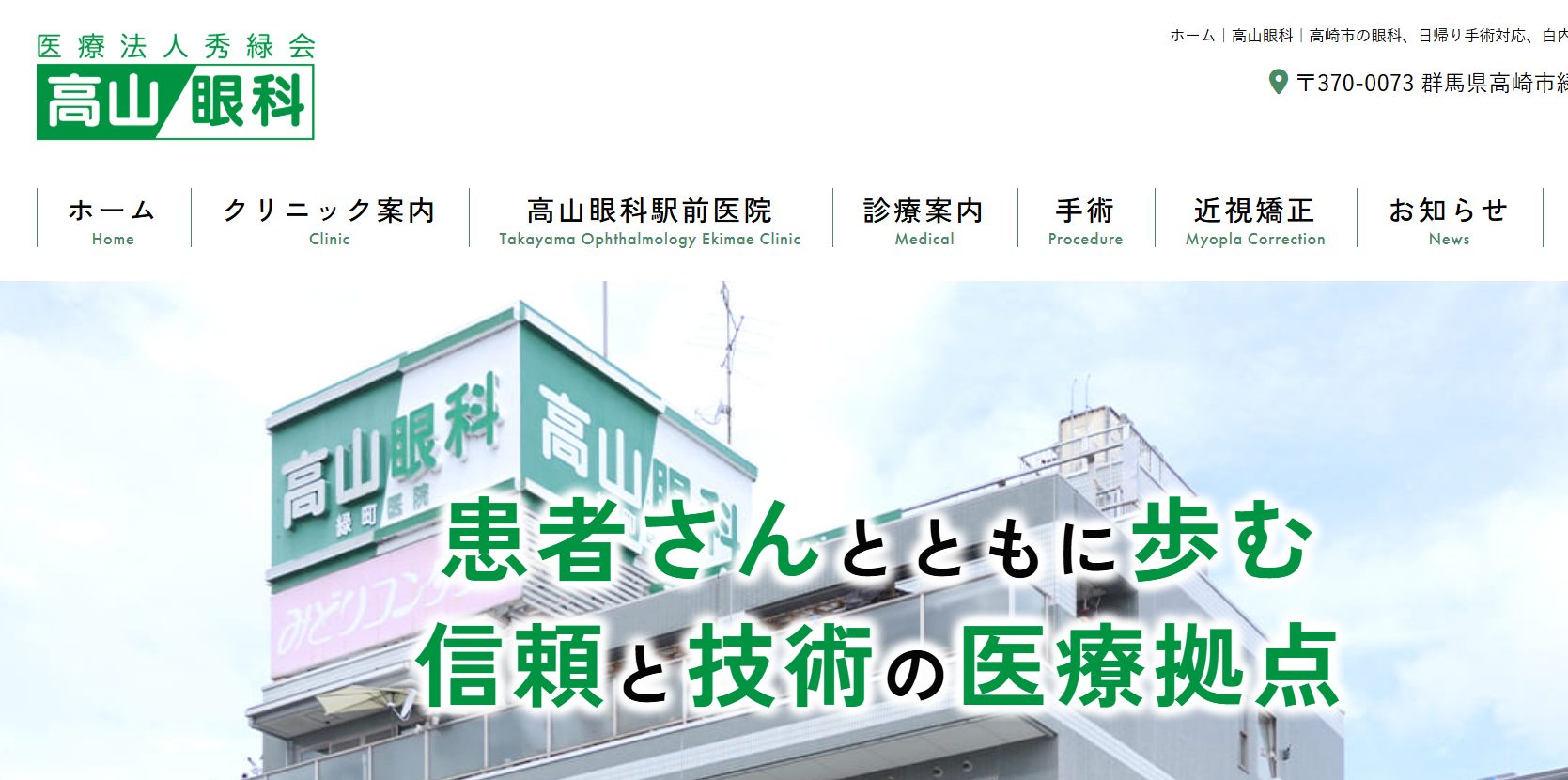 群馬でレーシック手術に対応しているクリニックの2つ目は、高山眼科緑町医院です。